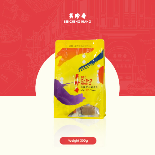 Bee Cheng Hiang's Mini EZ Cheese is a delectable treat that comprises a heavenly slice of cheddar cheese atop our freshly grilled Bakkwa.